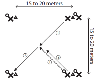 - Create a large square (15–20m sides) using 4 cones